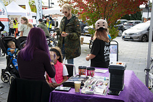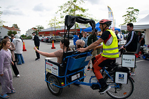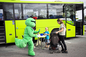 På torget fanns information om de nya sopkärlen, kollektivtrafiken samt energi- och klimatrådgivning. Vår parkingenjör Maria Johansson och vår kommunekolog Elin vanDooren tog med nyfikna besökare på en guidad tur i Husby Park, där allt från växtval till fiskpassagen visades och förklarades. Under dagen bjöds det på kaffe och bullar, gratis cykelfix av Cykelgaraget och prova-på-turer med Cykling utan ålder. Många barn passade på att testa att köra sopbil och buss, ta busskörkort, hälsa på Sörmlandstrafiks maskot Busse och få ansiktsmålning.